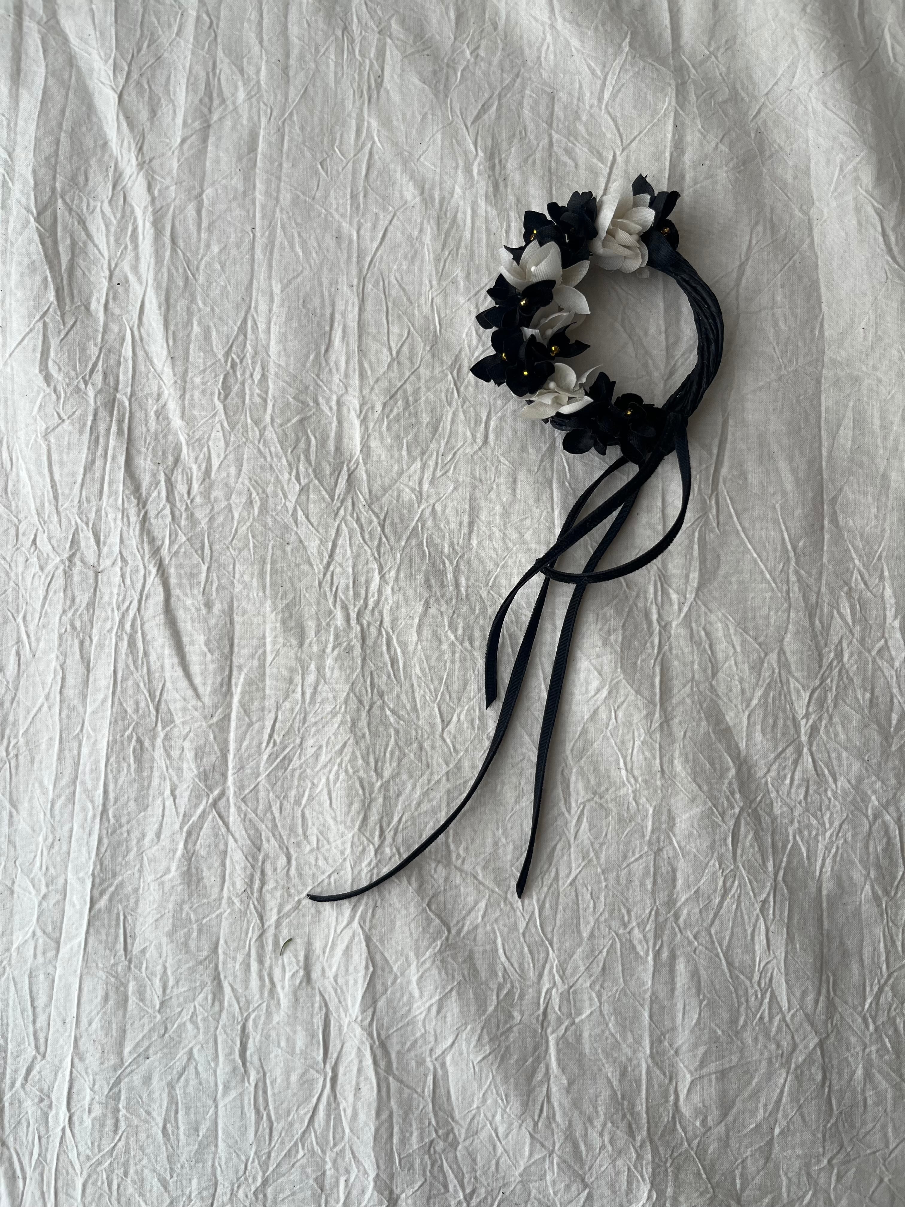 黒布の小花のヘップはゴールドです。